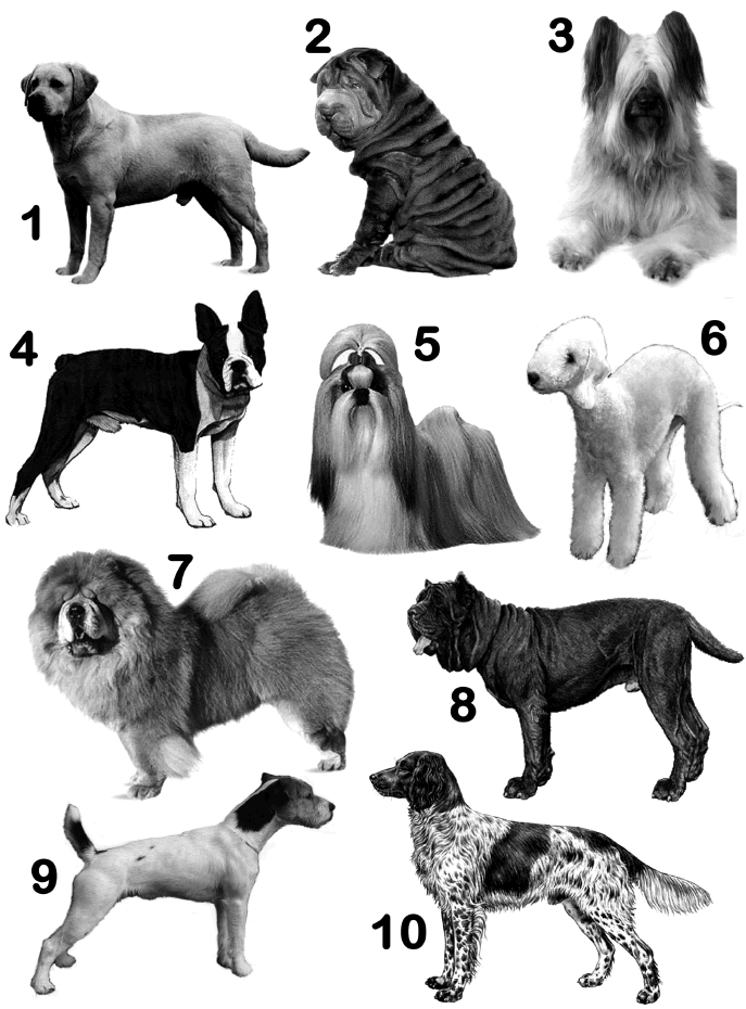 They have to name the beed of dog shown in each of the ten pictures.